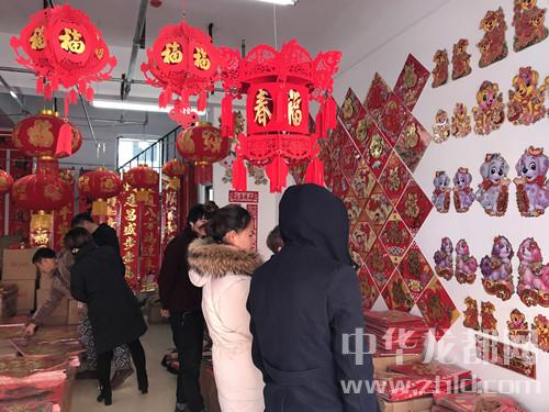 近日,華耀城A區(qū)精品市場內(nèi)出現(xiàn)了一條“紅街”,因?yàn)檫@條街上的門店賣的是對聯(lián)、窗花、紅燭等紅色的商品?!芭l(fā)對聯(lián)就年前一個(gè)月的好生意,這幾天忙不過來,家里的親戚都來幫忙了!”經(jīng)營對聯(lián)批發(fā)生意的李陽說。他的店里掛著各式各樣的對聯(lián)、年畫(圖二),其中一些帶有小狗元素的裝飾品銷量特別好。