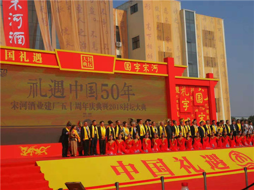 金秋十月,五谷豐登,神州大地,秋釀飄香。在這美好的季節(jié),地處老子故里的河南宋河酒業(yè)迎來了她五十歲華誕。10月30日,“禮遇中國(guó)五十年——宋河酒業(yè)建廠五十周年慶典暨2018封壇大典”在鹿邑宋河酒業(yè)生產(chǎn)園區(qū)隆重開幕,省市縣領(lǐng)導(dǎo)、行業(yè)專家與來自全國(guó)各地的經(jīng)銷商、供應(yīng)商以及全國(guó)知名品牌的白酒企業(yè)近1500人共同見證這一時(shí)刻,見證在豫酒轉(zhuǎn)型升級(jí)政策推動(dòng)下、宋河酒業(yè)的振興之路。