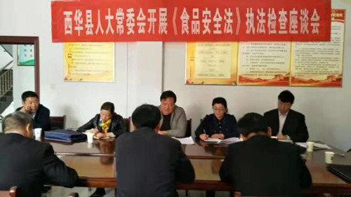 11月2日,西華縣人大常委會(huì)副主任趙曉春帶領(lǐng)由部分省、市、縣人大代表組成的執(zhí)法檢查組,對(duì)該縣貫徹實(shí)施《中華人民共和國(guó)食品安全法》情況進(jìn)行了執(zhí)法檢查。縣政府副縣長(zhǎng)趙增先及相關(guān)部門(mén)負(fù)責(zé)人等陪同。