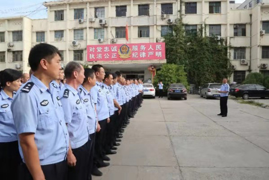 為進(jìn)一步凝聚警心、鼓舞士氣,全面打贏新中國(guó)成立70周年大慶安保維穩(wěn)攻堅(jiān)戰(zhàn),9月14日上午,西華縣公安局在辦公樓前舉行“踐行新使命、忠誠(chéng)保大慶”決戰(zhàn)決勝戰(zhàn)前動(dòng)員大會(huì)。
