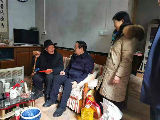 在鹿邑縣中心敬老院娛樂室內(nèi),劉國連、胡軍與老人一一握手,向老人們詢問吃的好不好、住的暖不暖、年貨全不全。同時叮囑養(yǎng)老院負責(zé)人要照顧好老人們,讓他們過上一個歡樂祥和的春節(jié)。