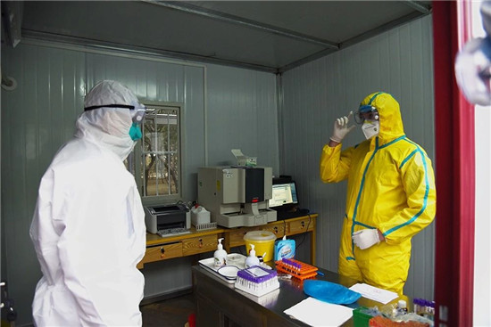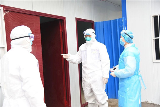 醫(yī)院在附近賓館租用25個(gè)單間,用于一線醫(yī)務(wù)人員臨時(shí)休息,醫(yī)務(wù)人員換班時(shí)由專車接送,吃飯由專人派送,確保任何一個(gè)環(huán)節(jié)都不會(huì)發(fā)生意外感染。 于健、高飛深入隔離區(qū)慰問值班醫(yī)務(wù)人員,對(duì)他們舍小家、顧大家,為防疫工作大局、為更多群眾的生命與健康付出的辛苦努力,表示衷心的感謝。