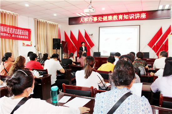 18日下午, “健康周口行 大醫(yī)獻(xiàn)愛心”健康教育志愿服務(wù)隊(duì)?wèi)?yīng)邀走進(jìn)川匯區(qū)人和辦事處,為干部職工和轄區(qū)居民作了《保持健康生活方式、掌握幸福長壽鑰匙》講座。講座現(xiàn)場(chǎng),來自周口市中心醫(yī)院心內(nèi)四科的劉華玲主任利用ppt課件,分別從健康基本知識(shí)和理念、健康生活方式與行為及健康基本技能做了詳細(xì)分析講解,圍繞健康四大基石,結(jié)合群眾常見健康知識(shí)誤區(qū),對(duì)所講內(nèi)容進(jìn)行總結(jié)概括,進(jìn)一步加深了轄區(qū)居民對(duì)健康素養(yǎng)知識(shí)的理解。同時(shí),結(jié)合真實(shí)病例,深入淺出地為大家講解了高血壓的基本概念、分類、高血壓治療原則和目標(biāo)、難治性高血壓的處理等,重點(diǎn)強(qiáng)調(diào)了高血壓常見危險(xiǎn)因素及預(yù)防措施。
