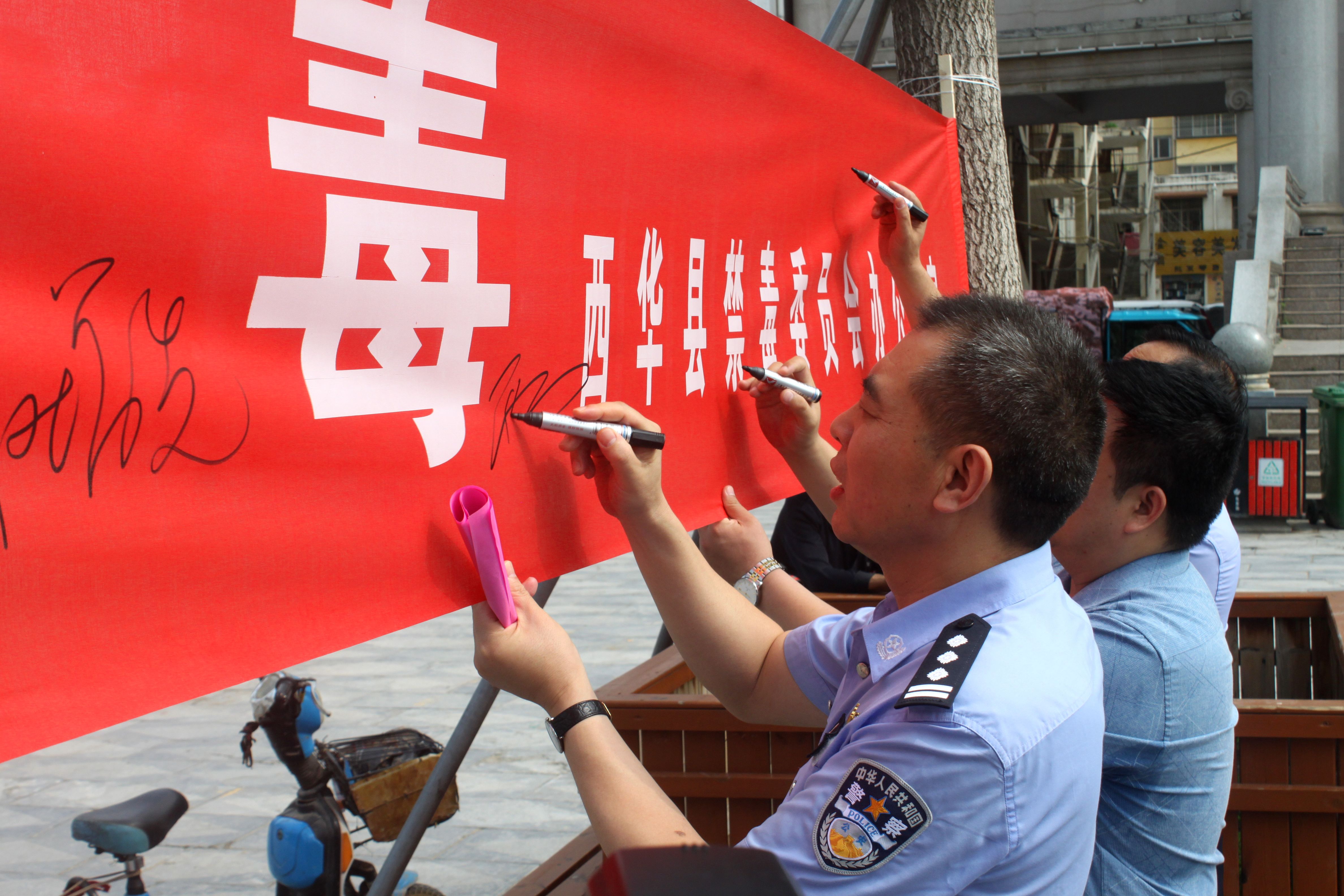 活動現(xiàn)場,趙增先在縣公安局政委邢玉周等同志的陪同下,觀看活動宣傳展板、在宣傳條幅上簽名,并走上街頭發(fā)放宣傳資料,通過多種形式向過往群眾普及禁毒知識,倡導(dǎo)群眾珍愛生命、拒絕毒品,號召大家一同加入全民禁毒大家庭,齊心協(xié)力共同抵制毒品。