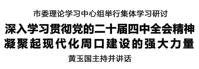 本報訊 (記者 王艷) 11月8日,市委理論學習中心組舉行集體學習研討,深入學習貫徹黨的二十屆四中全會精神,示范帶動全市各級黨組織和廣大黨員干部興起學習貫徹熱潮,凝聚起現代化周口建設的強大力量。市委書記黃玉國主持并講話。