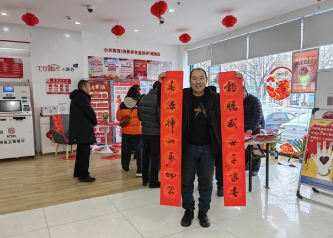 新春佳節(jié)來臨之際,工行周口分行傳承中華民族習(xí)俗,積極營造歡樂祥和吉慶的節(jié)日氛圍,精心組織本行書法家和書法愛好者在營業(yè)網(wǎng)點(diǎn)開展“寫春聯(lián)送福字賀新年”活動,為廣大群眾送上新春美好祝福。