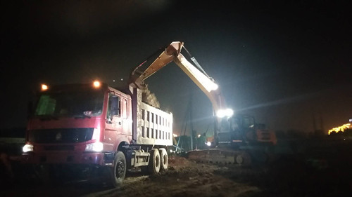 當晚22時半許,記者在引黃調蓄施工現(xiàn)場看到,200余輛工程機械緊張作業(yè),挖掘機、推土機的轟鳴聲震耳欲聾,渣土車來回穿梭,各種施工機械加足馬力緊張有序地進行作業(yè),120余名工人披星戴月堅守崗位,加班加點奮戰(zhàn)在施工一線,現(xiàn)場到處一片緊張繁忙的施工景象。