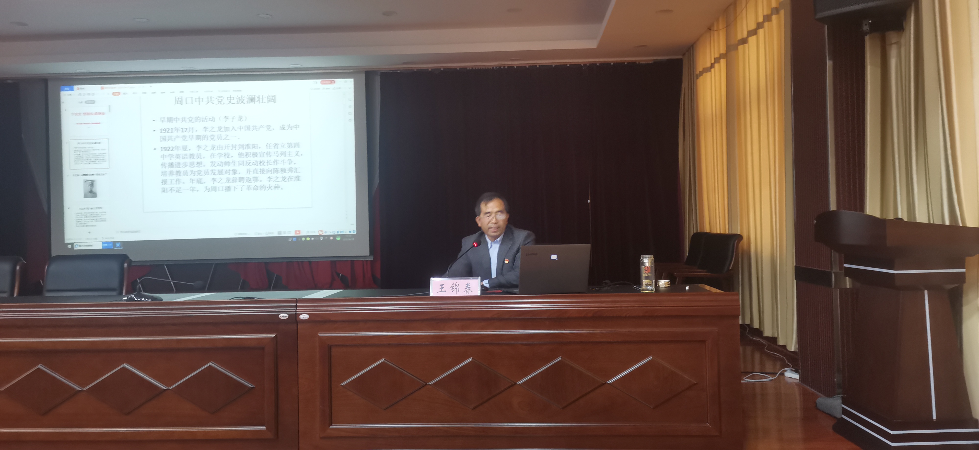 報(bào)告會(huì)上,王錦春結(jié)合周口黨史資料和采訪的內(nèi)容,講述了發(fā)生在周口大地上的紅色故事和戰(zhàn)斗傳奇。在這些傳奇故事中,既有早期周口革命火種的傳播者,也有浴血奮戰(zhàn)的抗日民族英雄,既有奮勇殺敵不怕犧牲的優(yōu)秀共產(chǎn)黨員,也有全力參與解放戰(zhàn)爭(zhēng)的支前平民英雄等,使與會(huì)人員對(duì)中國(guó)共產(chǎn)黨在革命過程中作出的巨大犧牲、展現(xiàn)的巨大勇氣、彰顯的巨大力量有了更加深刻的感悟和了解。