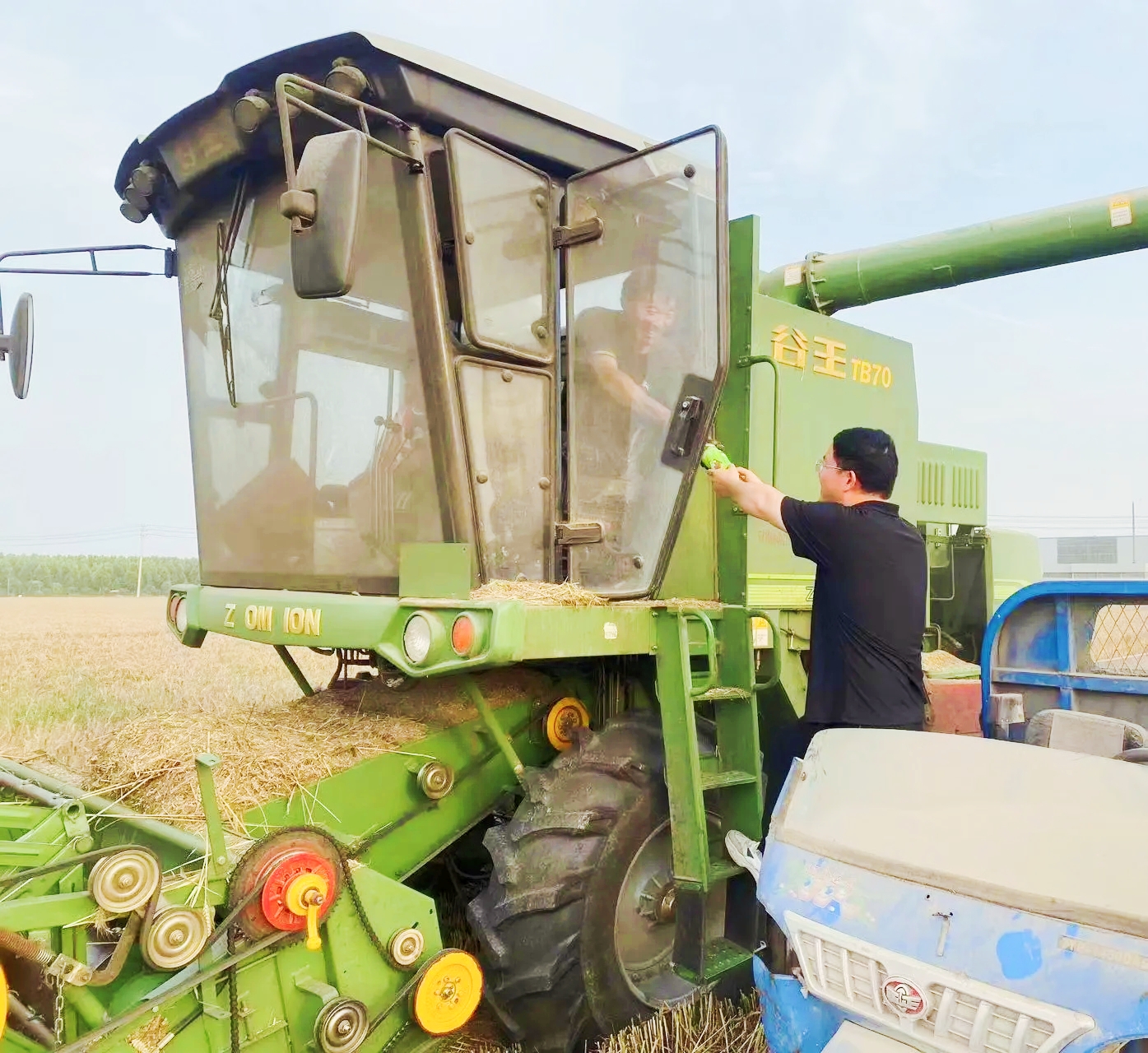 6月2日下午3時許,天空已經(jīng)陰沉下來,不時有零星小雨滴落。許灣辦事處石莊行政村村民肖士禮站在自家的地頭上,注視著收割機來來往往,機器發(fā)出隆隆的轟鳴聲,格外響亮。收割機駛過,“麥浪”逐漸消失,伴隨著收割機尾部吐出的碎末,秸稈鋪成一條條小路。滿倉后,麥粒從收割機里跳躍而出,堆起一座座小山。“手里有糧心里不慌。順利收了,我這心也不吊著了。”肖士禮眉頭緊皺,旁邊陪伴著他的村干部和駐村第一書記石彥龍在一旁輕聲安慰。