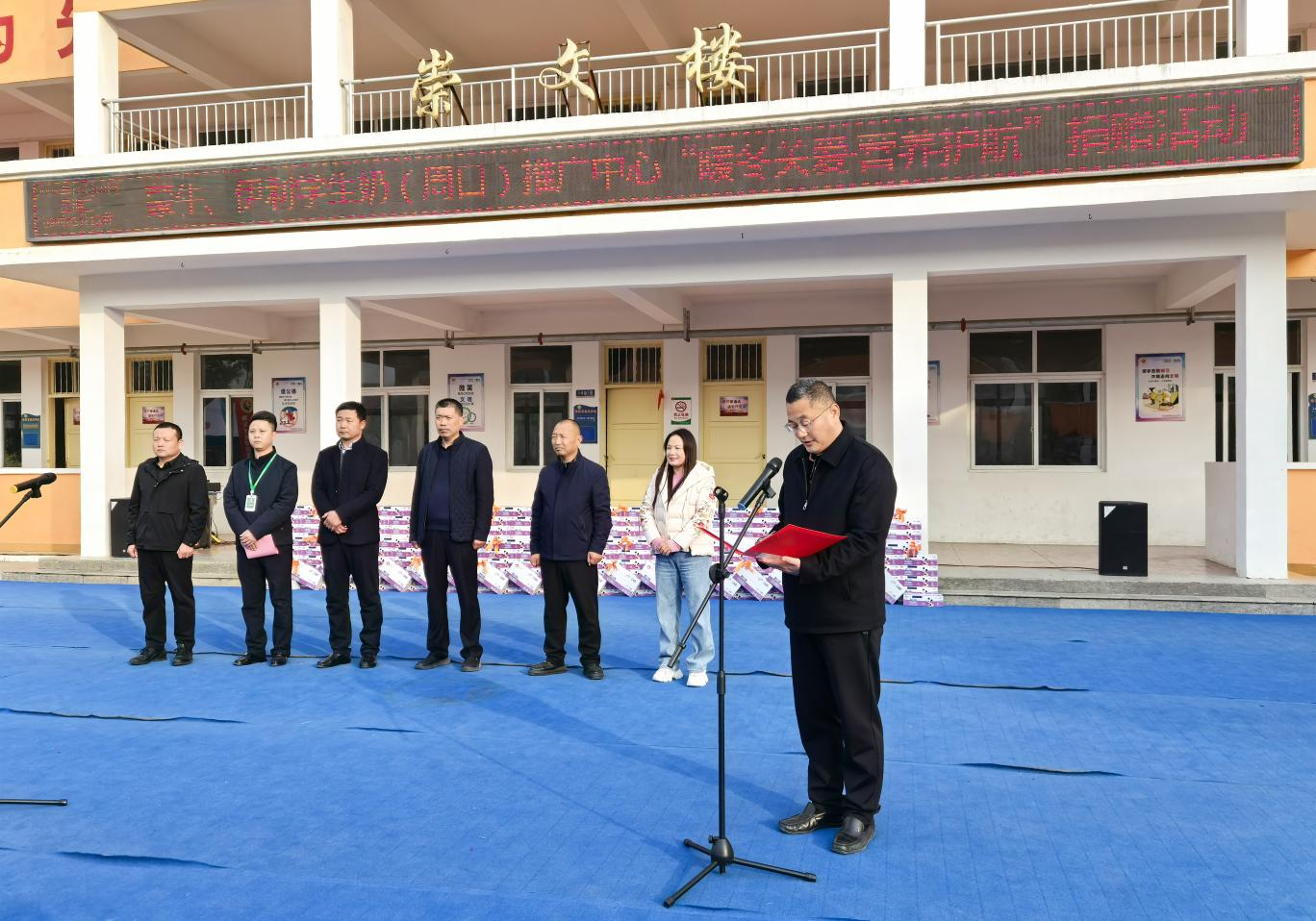 活動(dòng)開始,韓玉東代表淮陽區(qū)教育系統(tǒng)致歡迎辭。他向蒙牛、伊利學(xué)生奶(周口)推廣中心的慷慨捐贈(zèng)表示衷心感謝。他指出,此次企業(yè)的捐贈(zèng),不僅是一箱箱牛奶,更是一份份沉甸甸的關(guān)懷與期望?!拔镔|(zhì)支持”能夠讓孩子們?cè)诤涞亩精@得充足的營(yíng)養(yǎng),“知識(shí)賦能”則通過健康科普,幫助孩子們樹立科學(xué)的飲食觀念,培養(yǎng)良好的生活習(xí)慣,期待未來有更多企業(yè)和社會(huì)力量加入教育公益事業(yè),共同為孩子們的健康成長(zhǎng)保駕護(hù)航。