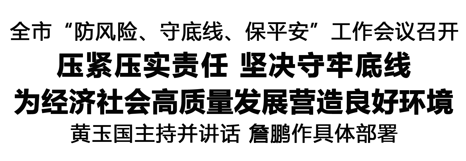 會(huì)議指出,歲末年初是安全生產(chǎn)事故易發(fā)多發(fā)期。全市上下要切實(shí)提高政治站位,牢固樹(shù)立底線思維、極限思維,保持清醒憂患,堅(jiān)持關(guān)口前移、源頭管控,以“時(shí)時(shí)放心不下”的責(zé)任感,扎實(shí)細(xì)致做好防風(fēng)險(xiǎn)、守底線、保平安各項(xiàng)工作,堅(jiān)決防范各類重大風(fēng)險(xiǎn)隱患,確保全市社會(huì)大局安全穩(wěn)定。