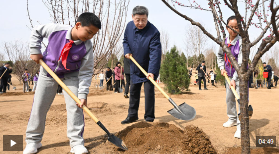 今年植樹時,總書記再談這項重要任務(wù)。他指出,植樹造林是美麗中國建設(shè)的一項重要任務(wù),要咬定青山不放松,立足當下、著眼長遠、接力奮進,把這件利國利民的大事扎實做好。