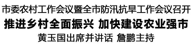 黃玉國要求,要堅持把黨的領(lǐng)導貫徹到“三農(nóng)”工作、防汛抗旱工作的全過程各方面,壓緊責任鏈條,堅持務(wù)實重干,提升能力本領(lǐng),凝聚工作合力,確保責任上肩、組織到位、措施落實,不斷開創(chuàng)全市“三農(nóng)”工作新局面,打好打贏防災減災救災主動仗。