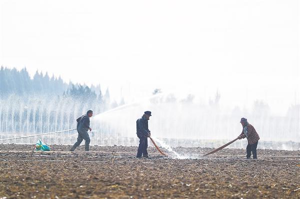 12月1日,在市城鄉(xiāng)一體化示范區(qū)許灣街道蔣橋村,村民們正在灌溉麥田,為小麥越冬儲(chǔ)備水分,確保苗情穩(wěn)健。