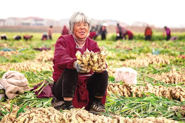 11月16日,淮陽區(qū)曹河鄉(xiāng)朱莊行政村的農(nóng)戶們忙著采收、分揀、搬運(yùn)飽滿肥碩的生姜。該村四百余畝生姜迎來豐收,預(yù)計畝產(chǎn)超萬斤,將為當(dāng)?shù)剞r(nóng)戶帶來可觀收益。