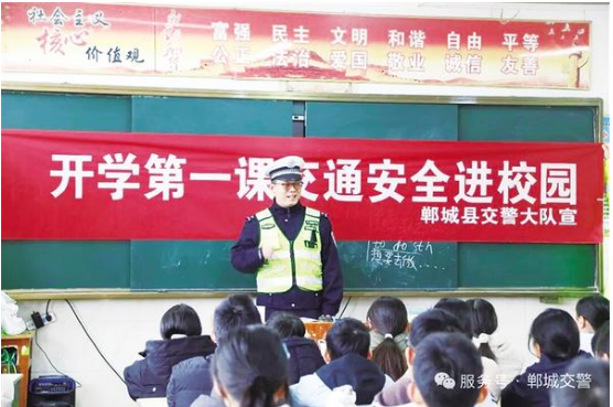 3月5日,民警為師生講解交通安全常識(shí)。當(dāng)日,鄲城縣公安局交通管理大隊(duì)宣傳小分隊(duì)走進(jìn)轄區(qū)第三實(shí)驗(yàn)小學(xué),為全校師生送上了一堂生動(dòng)有趣的交通安全“開(kāi)學(xué)第一課”,切實(shí)增強(qiáng)學(xué)生的交通安全意識(shí)和自我防護(hù)能力,為校園周邊道路交通安全筑牢防線。