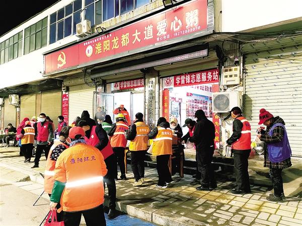 12月16日清晨6點,緊鄰淮陽太昊陵景區(qū)的龍都大道愛心粥屋前,剛出鍋的飯菜熱氣騰騰,人們開始自覺排隊,免費領(lǐng)取當(dāng)天的愛心早餐:一碗熱粥、兩個饅頭、一份燴菜。