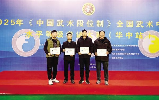 11 月 28 日,淮陽區(qū)選手王錦橋、陳百勛、段彥軍、彭中杰(從左至右)在領(lǐng)獎(jiǎng)臺上合影。
