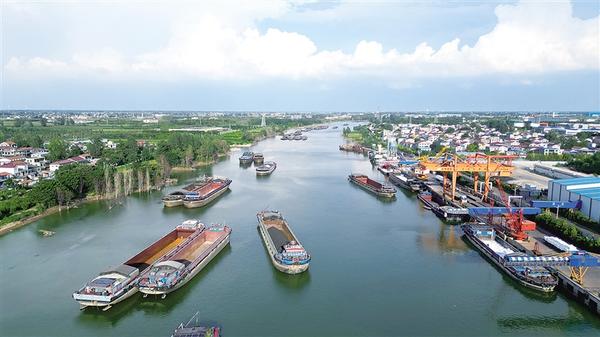 沙潁碧波潮涌東方,貨輪鳴笛通江達(dá)海。