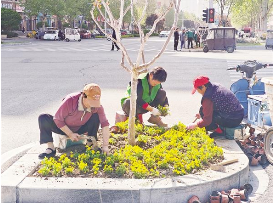 近日,多名園林綠化工人在周口大道與慶豐中路交叉口進(jìn)行花草更換補(bǔ)種作業(yè)。