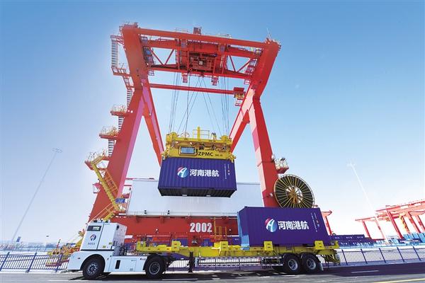 無人駕駛運(yùn)輸車在進(jìn)行集裝箱裝載調(diào)試。