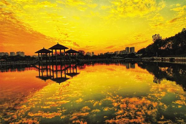 12月18日傍晚,周口公園在夕陽(yáng)的照耀下呈現(xiàn)出迷人景象。