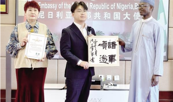 3月11日,周口市青年書法家張夢(mèng)宇受邀前往尼日利亞聯(lián)邦共和國(guó)駐華大使館,參加中外文化交流活動(dòng),并向使館外交官贈(zèng)送書法作品,以筆墨為媒,搭建起中尼兩國(guó)文化互鑒、友誼相通的橋梁。